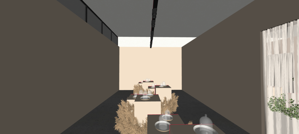 A primeira, em tons de bege, representou aromas de cereais. A segunda, em tom salmão, evocou os aromas frutados. E a terceira, em marrom escuro, remeteu aos aromas torrados. Juntas, conduzem uma jornada sensorial que apresenta o café como experiência estética e imersiva.
